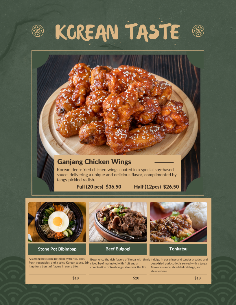 Delight in this savory Korean seafood pancake, packed with shrimp, squid, mussels and green onions, all perfectly crisped to golden perfection.